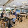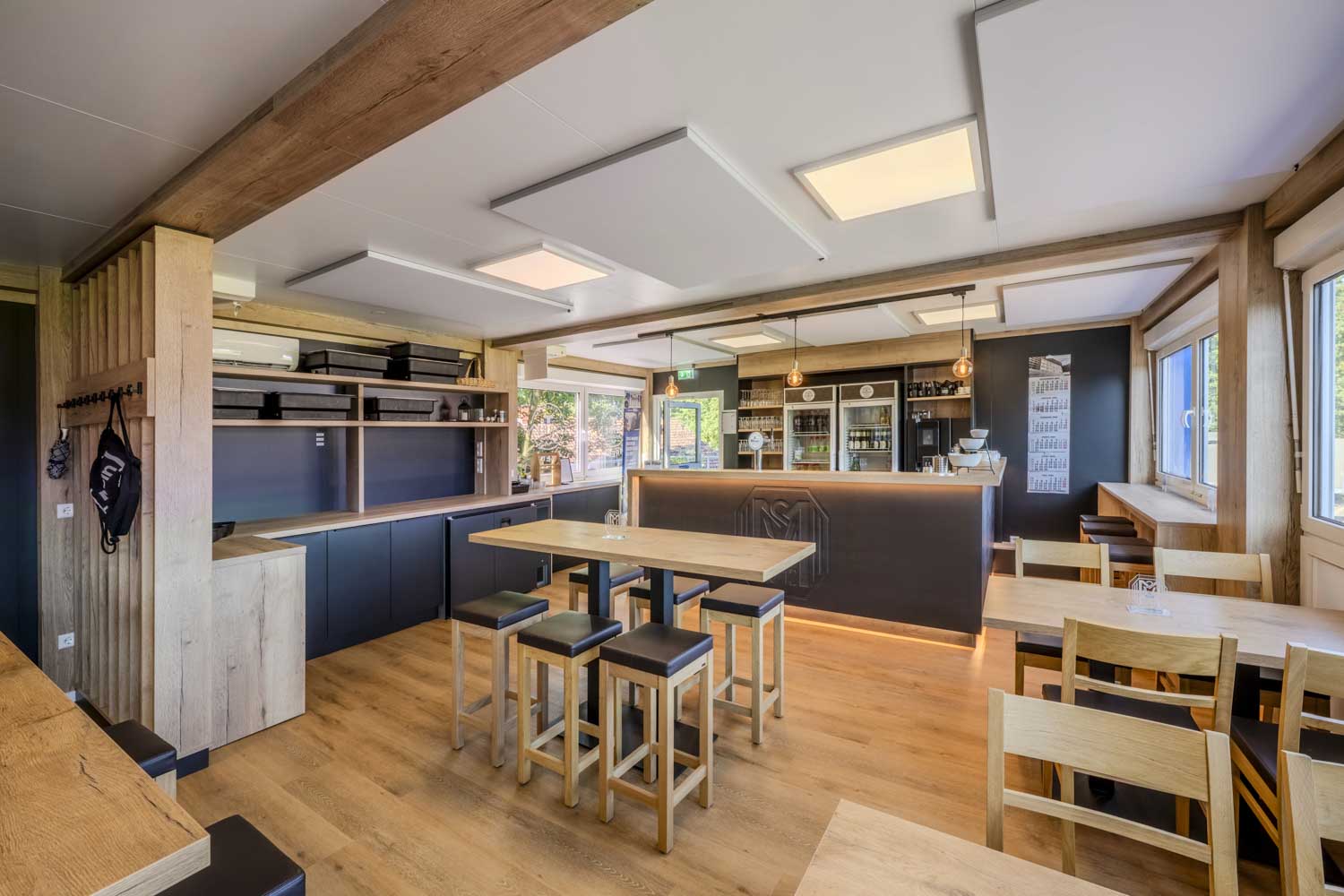 Rozšíření spojuje funkčnost s moderním vzhledem: zatímco místnosti pro přípravu občerstvení a skladovací prostory jsou umístěny v přízemním podlaží, horní tři podlaží nabízejí hojnost prostoru pro diváky. Skleněná čelní stěna směrem ke hřišti nabízí dokonalý výhled na zápas. Pro větší efektivnost byla pokladna přemístěna dopředu, kde je větší prostor na stoly a kde je možné lépe optimalizovat uspořádání tohoto prostoru.